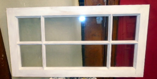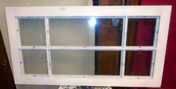 fönsterbåge med 6-rutor som munblåsta glas - - renoverad & grundmålad - - kan användas som överluftsfönster - - RESERVERAD - EJ TILL SALU - - Lagerplats: b.