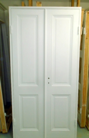 pardörr / dubbeldörr som är renoverad och målad - - (dörrbladsmått: B. 101,5 cm x H: 208,5 cm ) - - högerdörr aktiv - - nybyggd karm i vinterfälld fura med tidstypiska gångjärn - - installtionsklar - - Lagerplats: L.