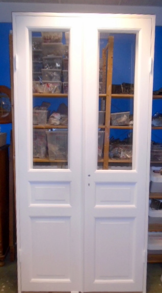 målad och byggnadsvårdsrenoverad spegelpardörr/dubbeldörr med 3-speglar & glasruta i varje dörr - - dörrbladsmått: ( B: 108,5 cm x H: 232 cm) - - karm nytillverkad med "antika"/tidstypiska beslag - - installationsklar - - glasmått: B: 33,5 cm x H: 113,5 cm - - Lagerplats: finns i Bromma butiken