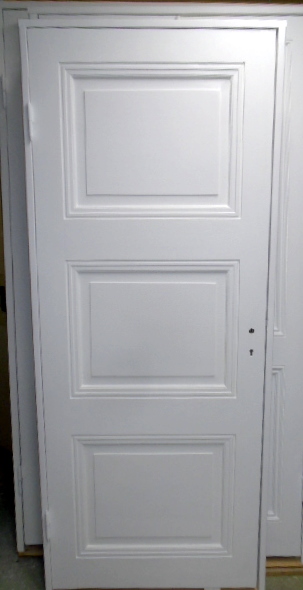 Spegeldörr med 3-speglar som är renoverad & målad - Dörrbladsmått: ( H: 204 cm x B: 80,5 cm) - - nybyggd karm i vinterfälld fura med "antika"/tidstypiska beslag (se bild) - - installationsklar - - Lagerplats: m.5 / bil