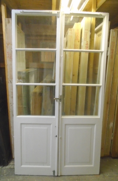 spröjsad kopplad pardörr balkongdörr/altandörr - - utåtgående med spanjolett - - - - samma som databas id 202.25.151 - - 16 st. munblåsta glasrutor (spricka i ett glas) , en trasig - - glasmått: B: 52,5 cm x H: 43 cm - - viss renovering erfodras - - - - Lagerplats m.0b