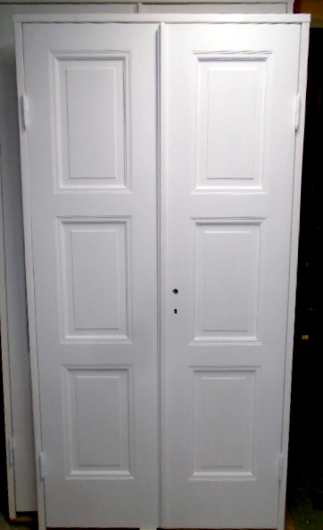 renoverad och målad spegelpardörr/dubbeldörr med 3-speglar i varje dörr - - dörrbladsmått: ( B: 101 cm x H: 204 cm) - - karm (kvistfri furukarm) nytillverkad i vinterfälld fura med antika/tidstypiska beslag - - installationsklar - - höger dörr aktiv ( se bild) - - Lagerplats: finns i Bromma butiken