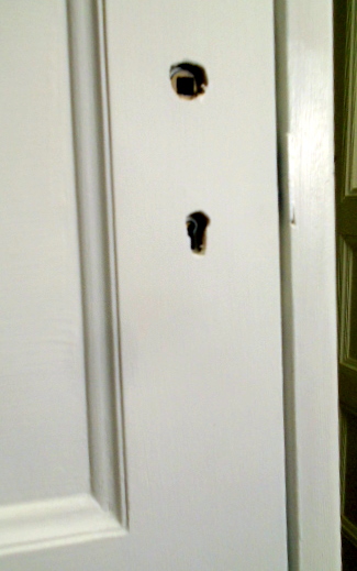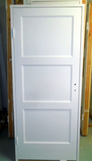 RENOVERAD och målad spegeldörr med 3-speglar (släta) - - dörrbladsmått: (B: 79,5 cm x H: 194,5 cm) - - Karm nybyggd i kvistfri fura med "antika" tidstypiska beslag (se bild) - - INSTALLATIONSKLAR - - profil: typ "svanhals" - - Lagerplats: m.1 23