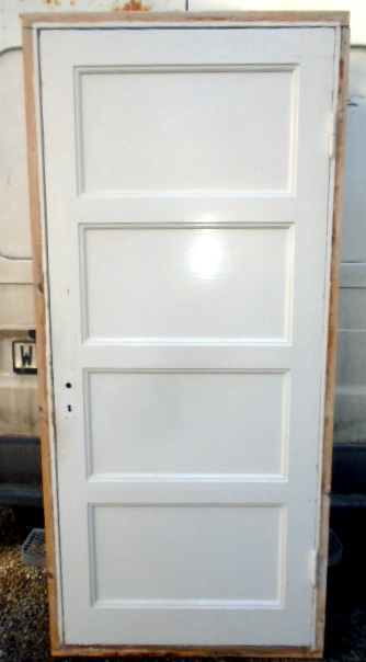 spegeldörr med fyra liggande speglar (släta) som behöver rengöras, slipas samt skapas på något ställe - - (mått på dörrbladet B: 87 cm x H: 203,5 cm ) - - Lagerplats: m.0