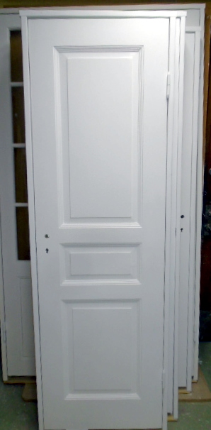 RENOVERAD och MÅLAD spegeldörr: tre speglar (upphöjda) - - med "antika"/tidstypiska gångjärn - - (mått på dörrbladet B: 63cm x H: 204 cm) - - - - karm nybyggd i vinterfälld fura - - - - INSTALLATIONSKLAR - - Lagerplats: m.