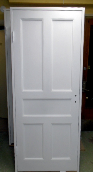 RENOVERAD & MÅLAD spegeldörr med 5-speglar (släta) & karm som är installationsklar - - dörrbladsmått: (B: 80,5 cm x H: 204 cm) - - karm nygjord i kvistfri vinterfälld fura - - - - Lagerplats: M.1 05