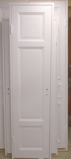 RENOVERAD spegeldörr : - - Dörrbladsmått: (B: 53 cm x H: 218,5 cm) - - nybyggd karm i vinterfälld fura med antika/tidstypiska beslag - - (MÅLAD samt INSTALLATIONSKLAR) - - - - Lagerplats: m.0b