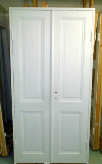 pardörr / dubbeldörr som är renoverad och målad - - (dörrbladsmått: B. 101,5 cm x H: 208,5 cm ) - - högerdörr aktiv - - nybyggd karm i vinterfälld fura med tidstypiska gångjärn - - installtionsklar - - Lagerplats: L.
