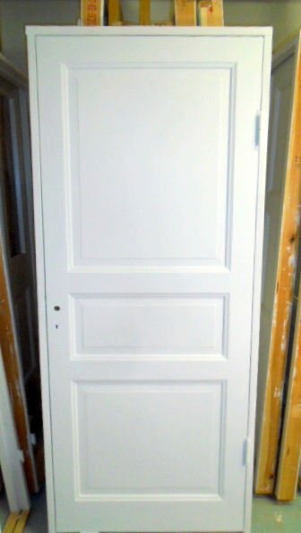 RENOVERAD och MÅLAD spegeldörr: tre speglar (upphöjda) - - nybyggd karm i vinterfälld fura med "antika"/tidstypiska gångjärn - - (mått på dörrbladet B: 83 cm x H: 204,5 cm) - - - - INSTALLATIONSKLAR - - Lagerplats: L.