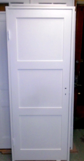 RENOVERAD och målad spegeldörr med 3-speglar (släta) - - dörrbladsmått: (B: 73 cm x H: 194 cm) - - Karm nybyggd i kvistfri fura med "antika" tidstypiska beslag (se bild) - - INSTALLATIONSKLAR - - Profil: typ "sneställd kant " - - Lagerplats: b.